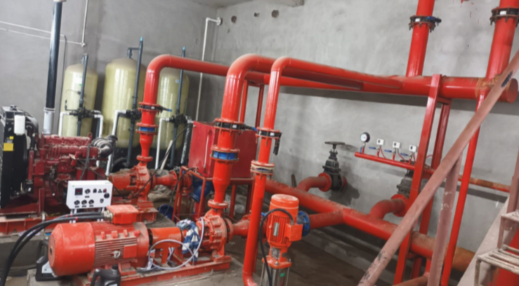 A fire pump house system is the core of a fire protection system that supplies water at high pressure to hydrants and sprinklers. It includes one or more electric or diesel fire pumps and a jockey pump to maintain system pressure. The system automatically starts when pressure drops, and components like storage tanks, piping, and controls are crucial for its reliable operation during a fire